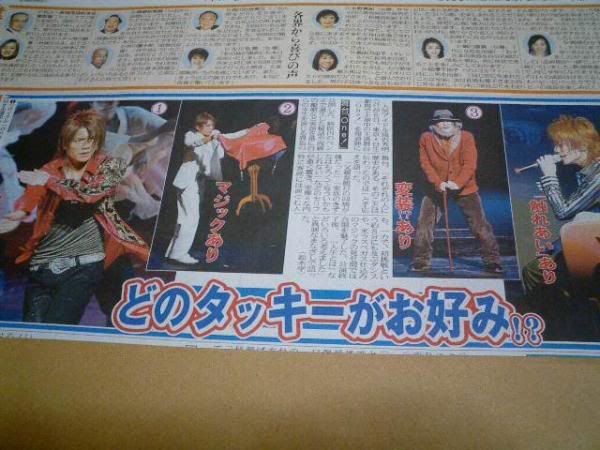 XDDD omg thats the pic of Takki as an old man *ROFLMAO* dancing to Serenade *HAHAHA* AHHHH! and his hair!!! its orange!!!! (hopefully is just the light thats making it look orange...) v___v Takkkkkiiiiii~~~~ WE WANTED KYON HAIR! hahah the "tacky" blue costume cracks me up x)