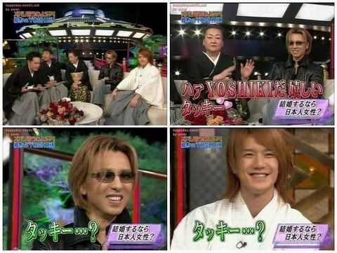anywho, the screenies above shows our sweet Takki quietly sitting there listening to the others talk throughout the entire segment... HAHA there was a part tho where they were discussing YOSHIKI's martial status. Kazu-chan said that he def wont/shouldnt marry his current? gaijin gf because hes a man of power blah blah + that he should return to Japan blah blah blah... but while she continued to explain she suddenly mentioned Takki!! she said (while imitating fangirls) "ha~ YOSHIKI da~ im so happy~ TAKKI~" LOLOLOLOL everyone including myself was like ('_'?) "Takki??" hahaha Ano sa Kazu-chan, what does Takki have anything to do w/ this??